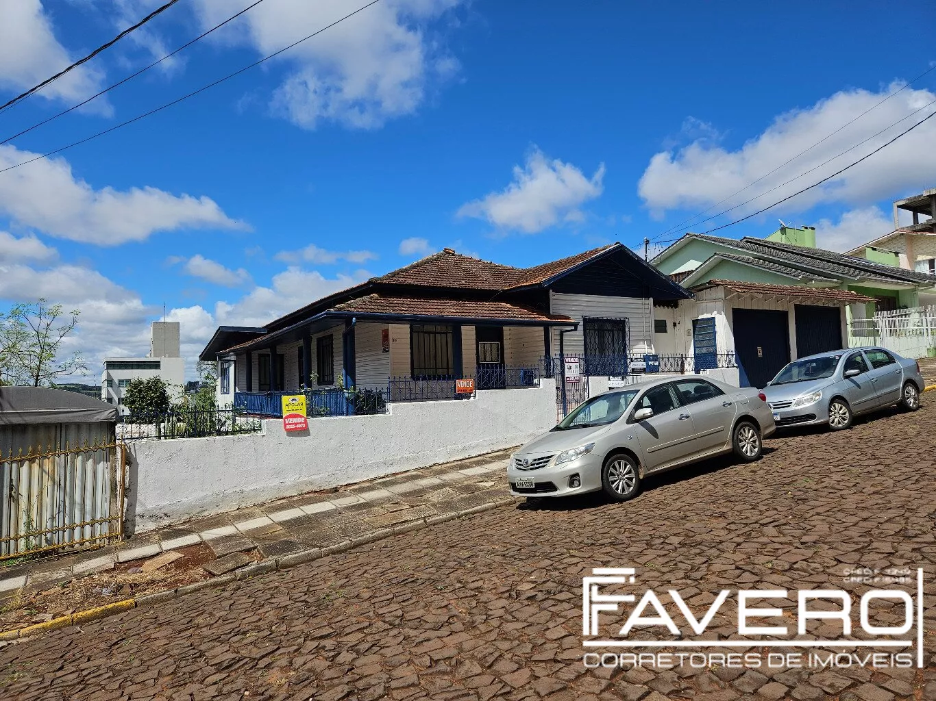 Está à venda um lote de 960,96 m² com uma casa de madeira localizada na Rua Iguaçu, no centro de Pato Branco.
